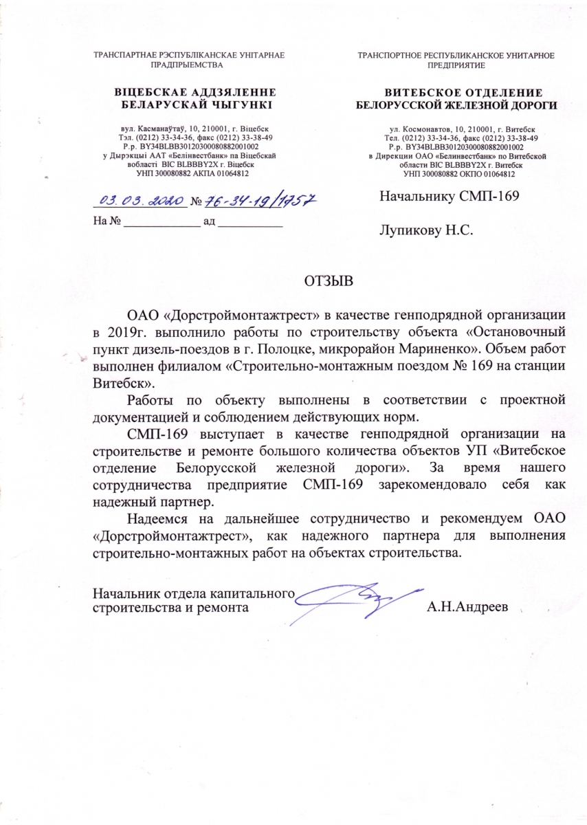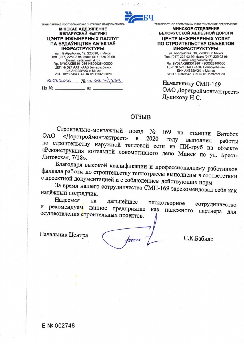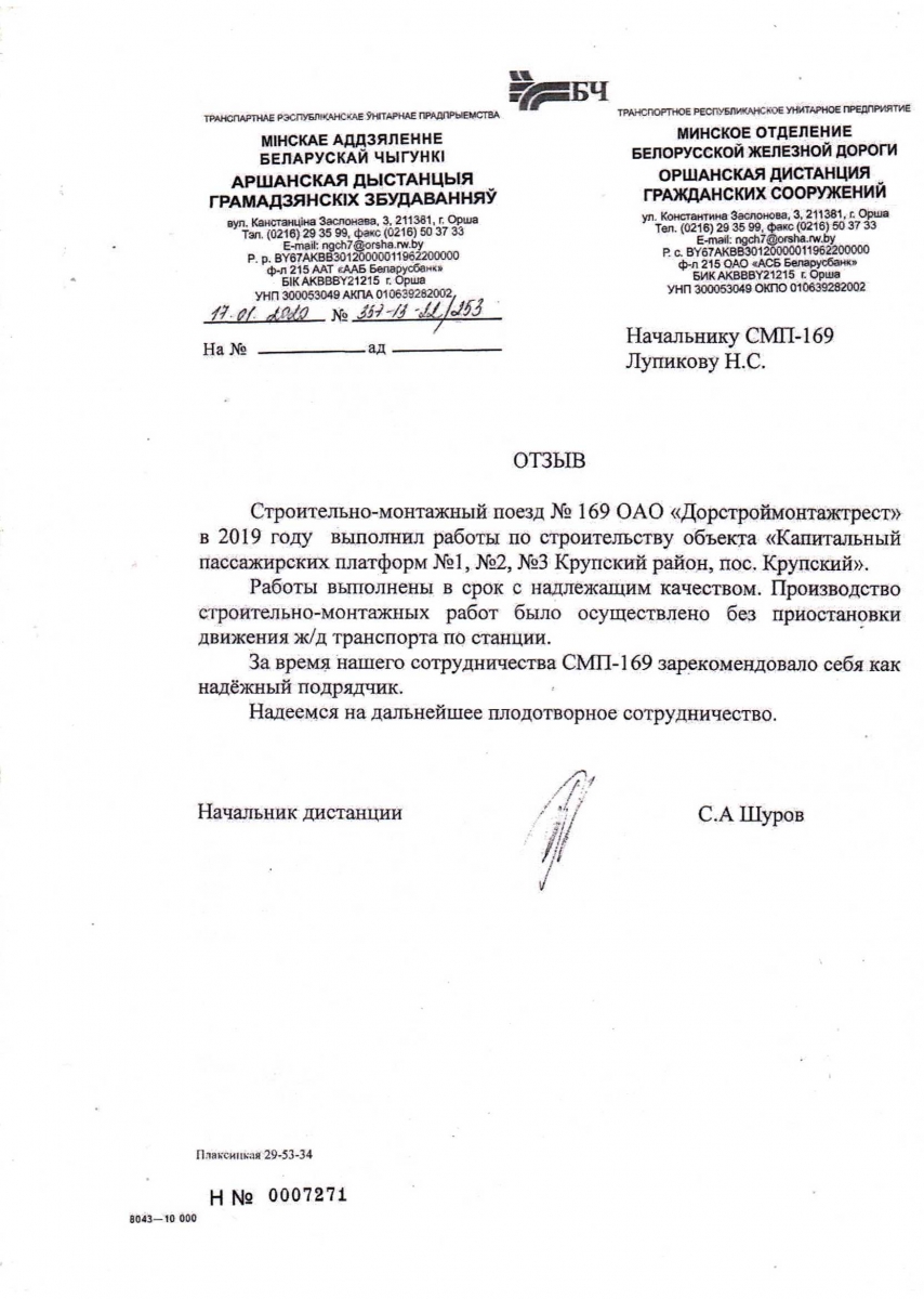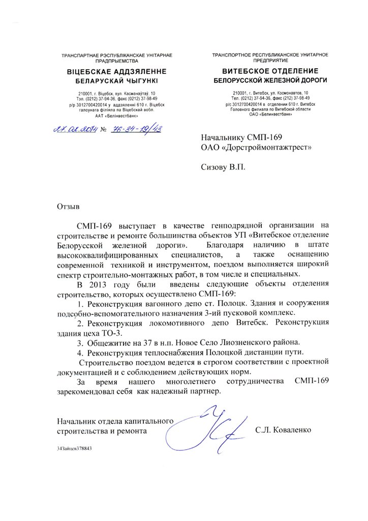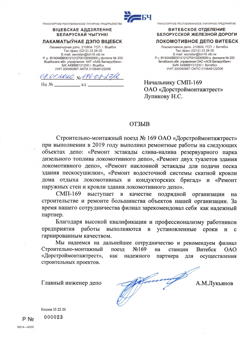 Филиал "Строительно монтажный поезд №169 на станции Витебск" ОАО "Дорстроймонтажтрест"