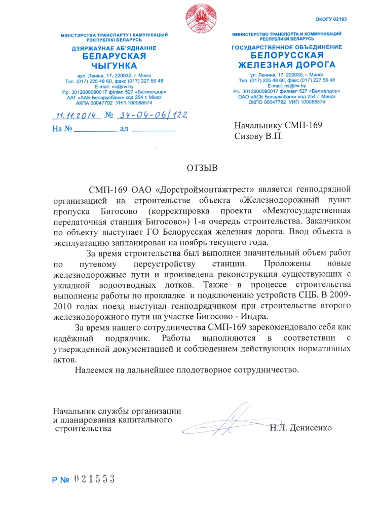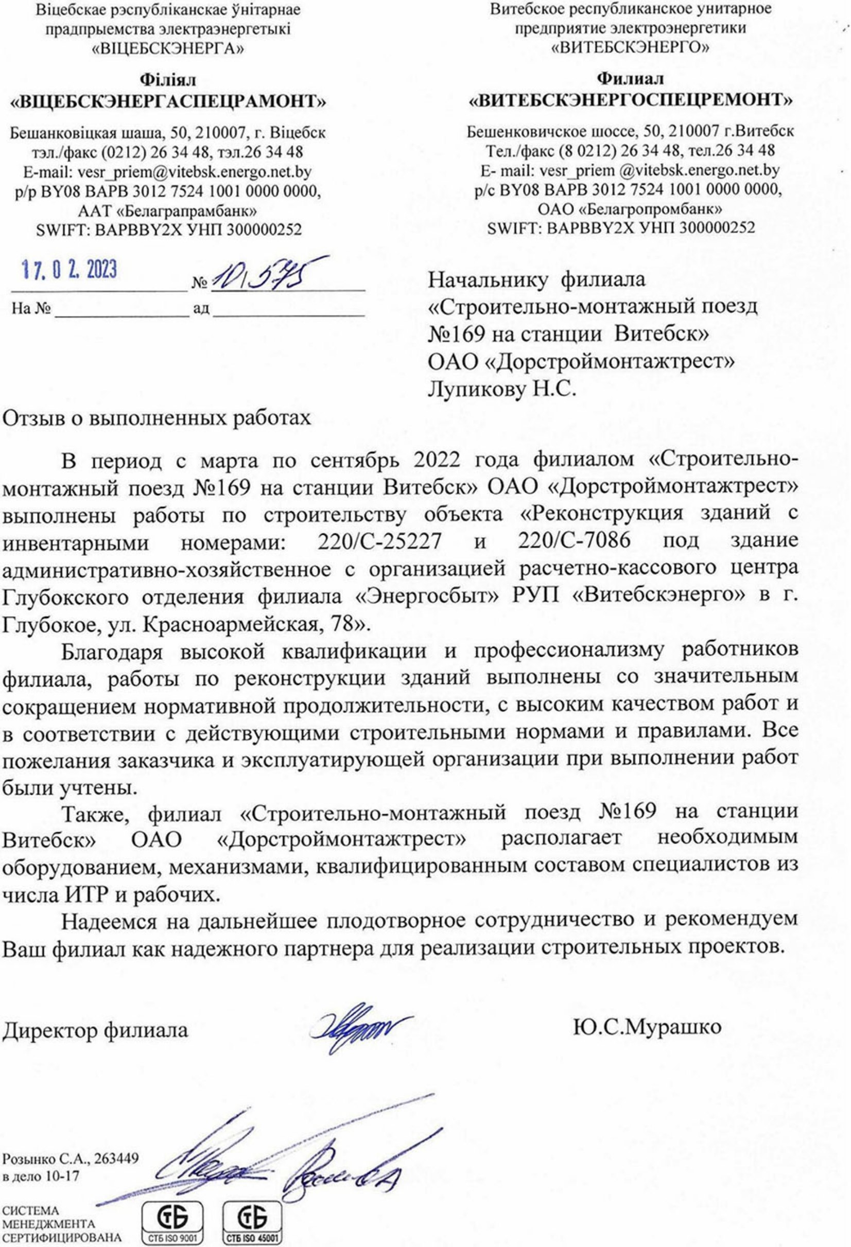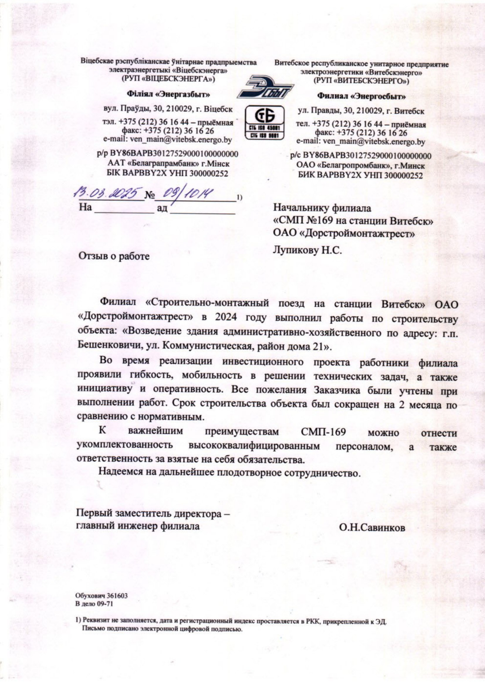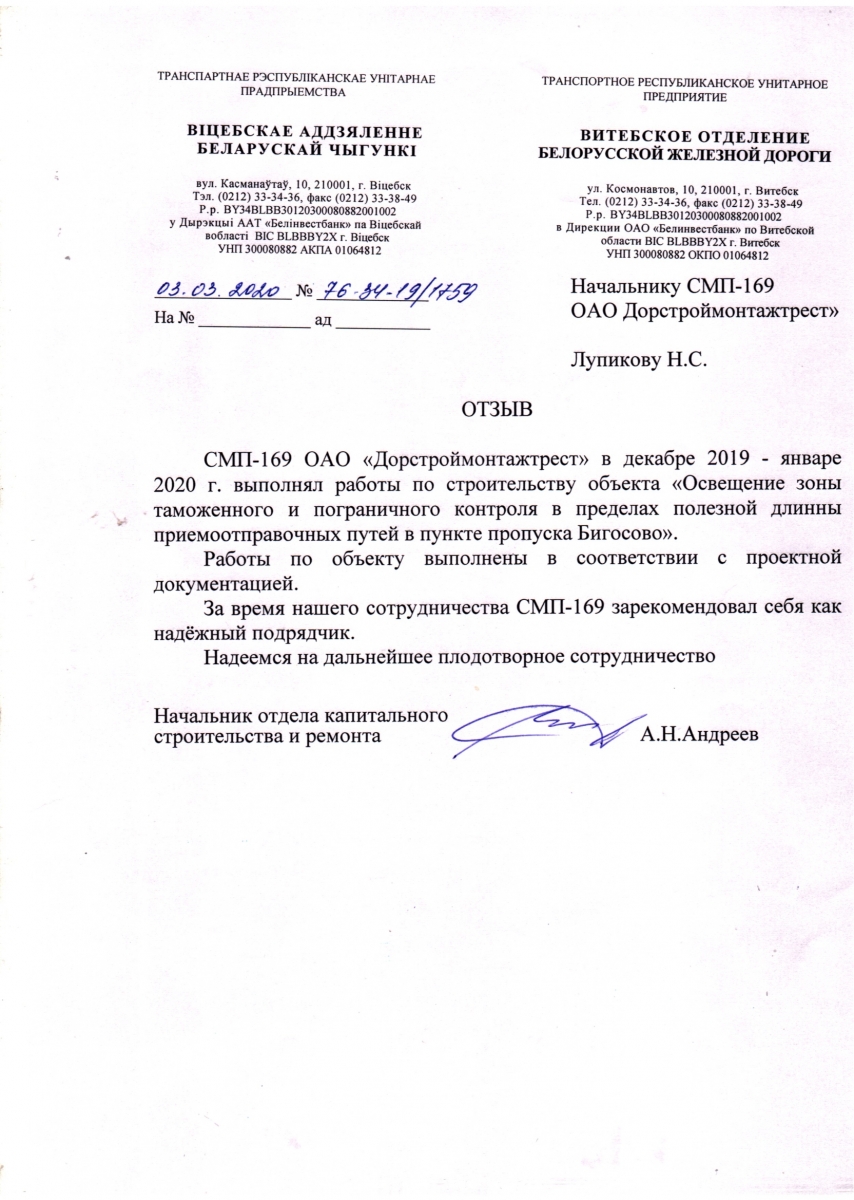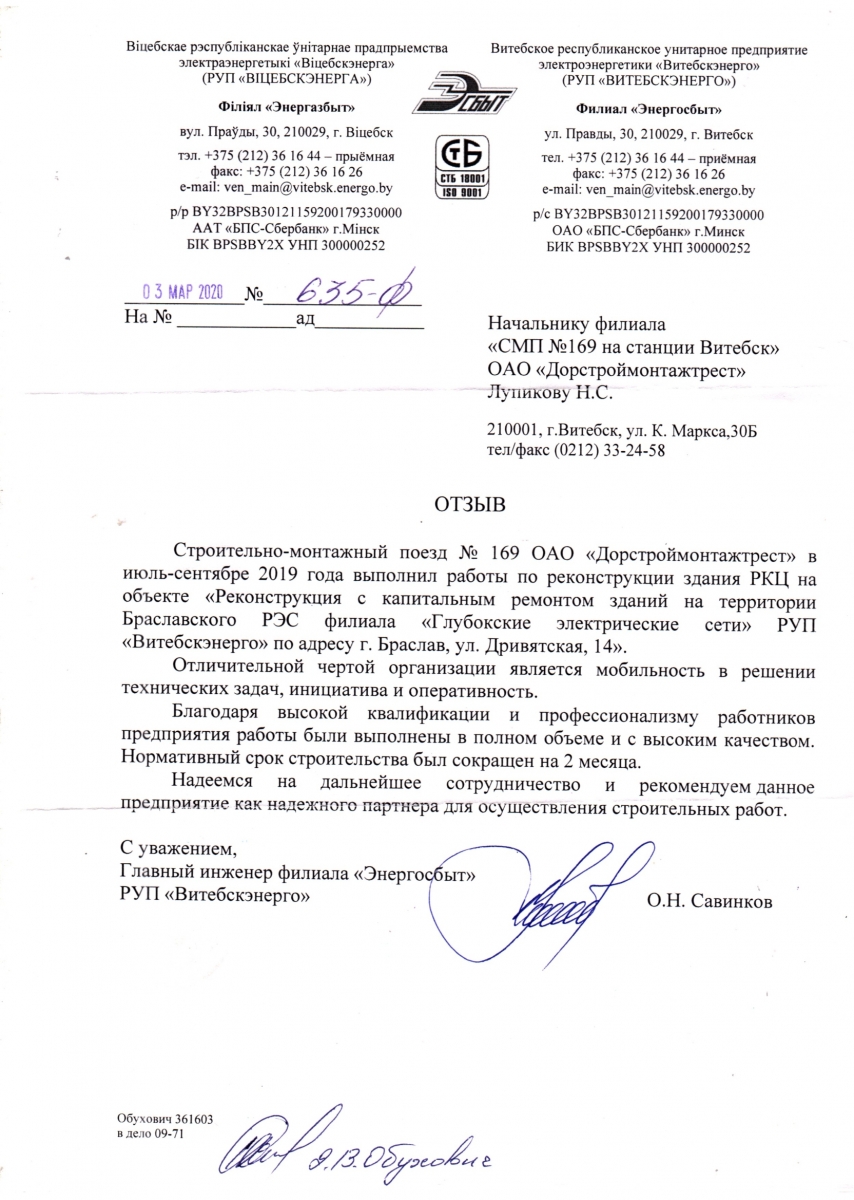 Филиал "Строительно монтажный поезд №169 на станции Витебск" ОАО "Дорстроймонтажтрест"