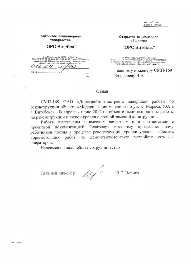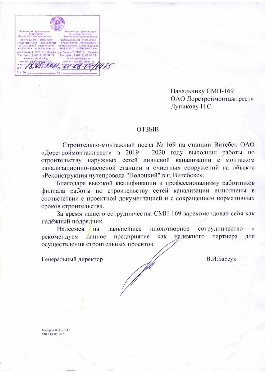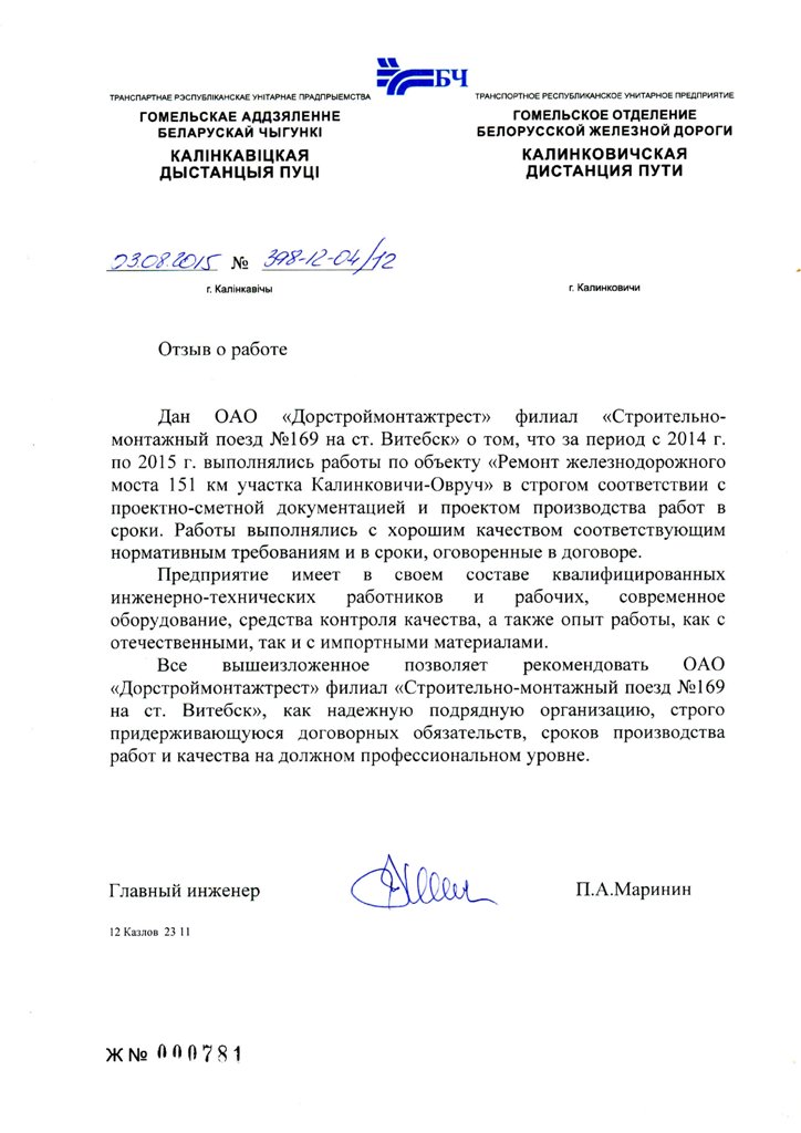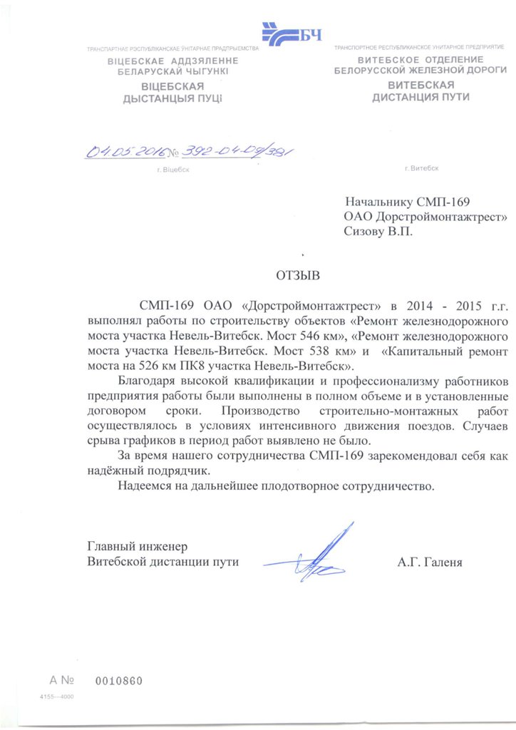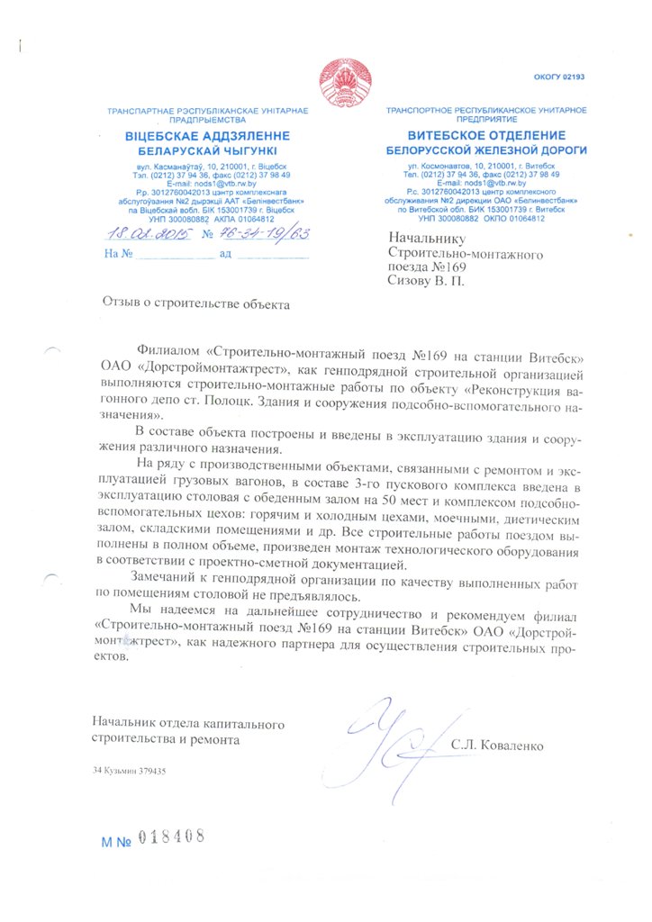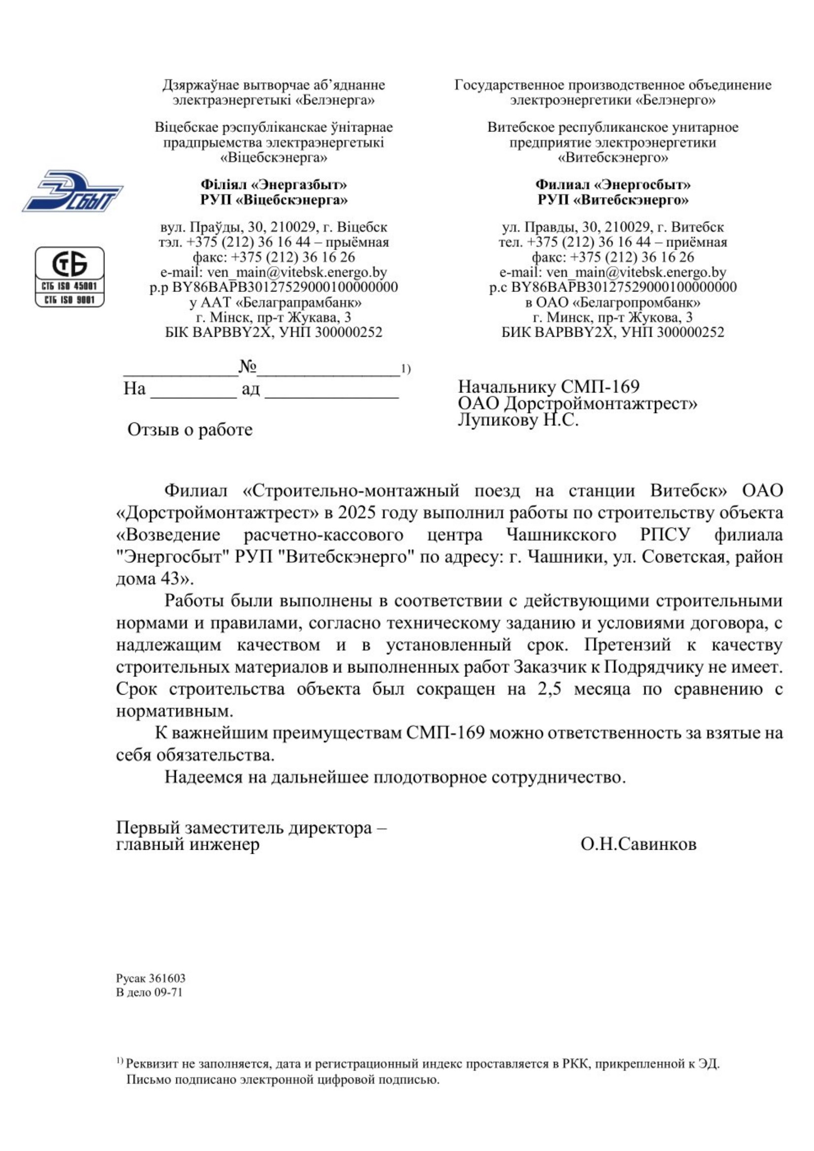 Филиал "Строительно монтажный поезд №169 на станции Витебск" ОАО "Дорстроймонтажтрест"