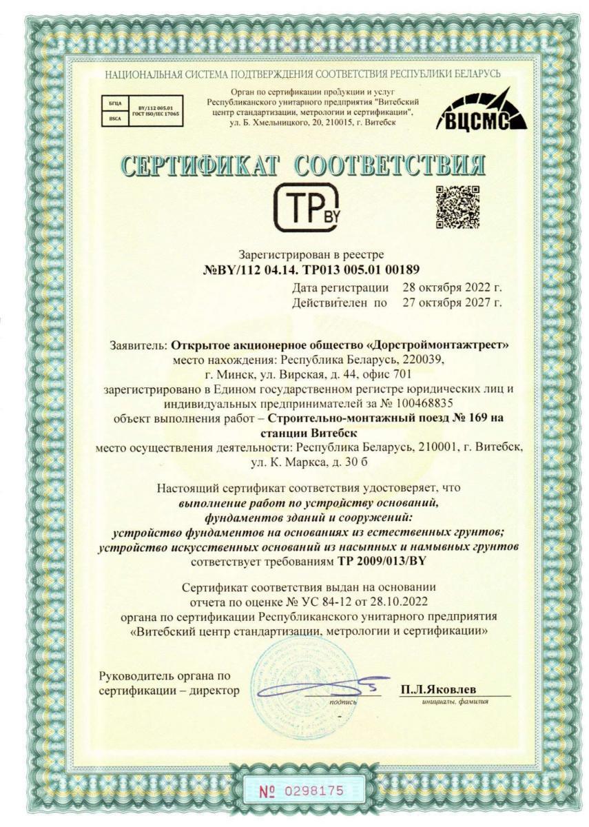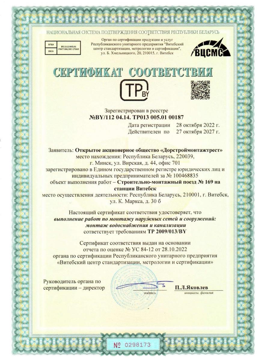 Филиал "Строительно монтажный поезд №169 на станции Витебск" ОАО "Дорстроймонтажтрест"