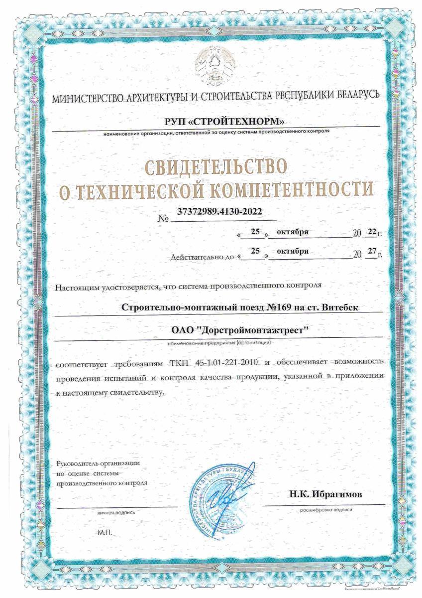Филиал "Строительно монтажный поезд №169 на станции Витебск" ОАО "Дорстроймонтажтрест"
